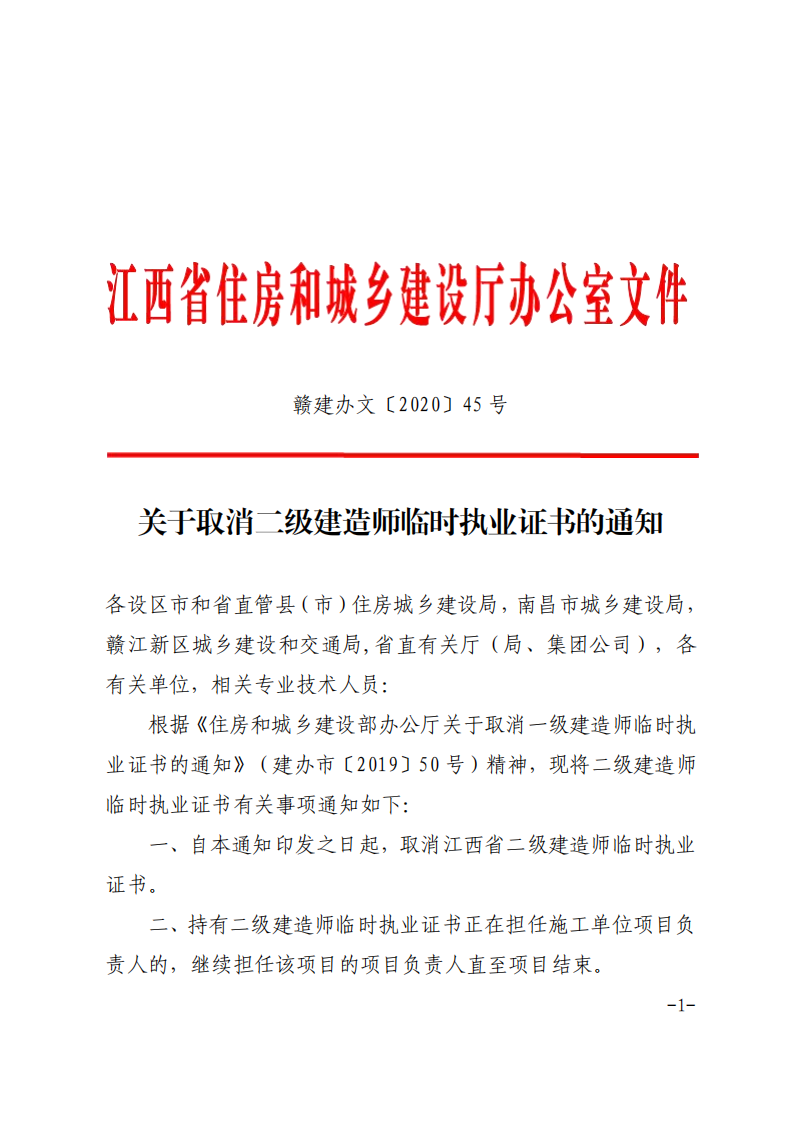 关于取消二级建造师临时执业证书的通知 -ag娱乐平台官方网站